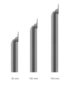 De stootplinten en stootranden zijn standaard te verkrijgen in 95, 145 of 195 mm. Andere maten zijn op aanvraag.